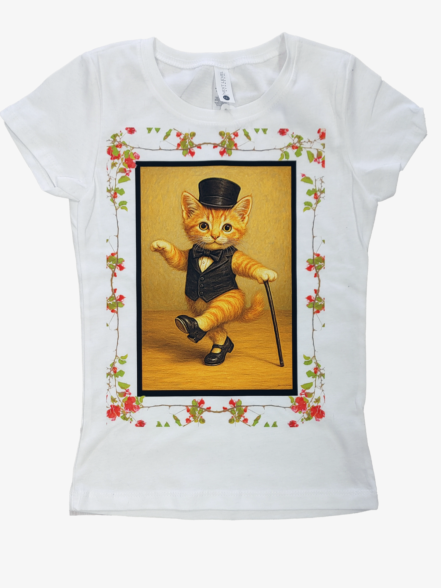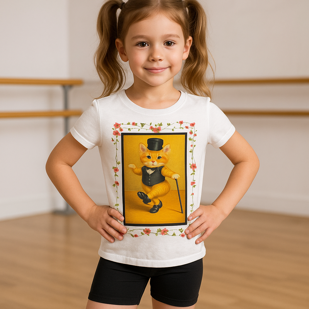 Premium cotton tee featuring a printed design of a tap dancing tabby. This youth cotton princess t-shirt is lightweight for increased mobility. Get the same comfort after each wash.